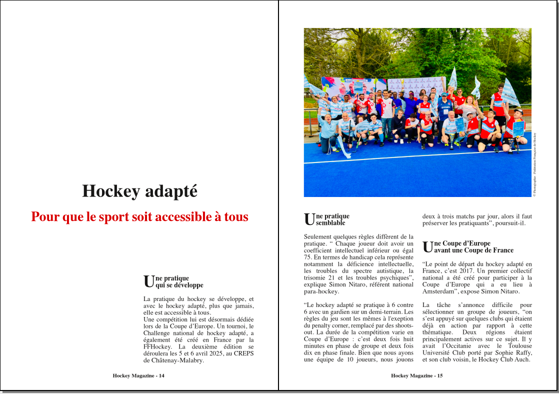 Le hockey est un sport pour tous, le hockey adapté se développe et organise son deuxième Challenge National.